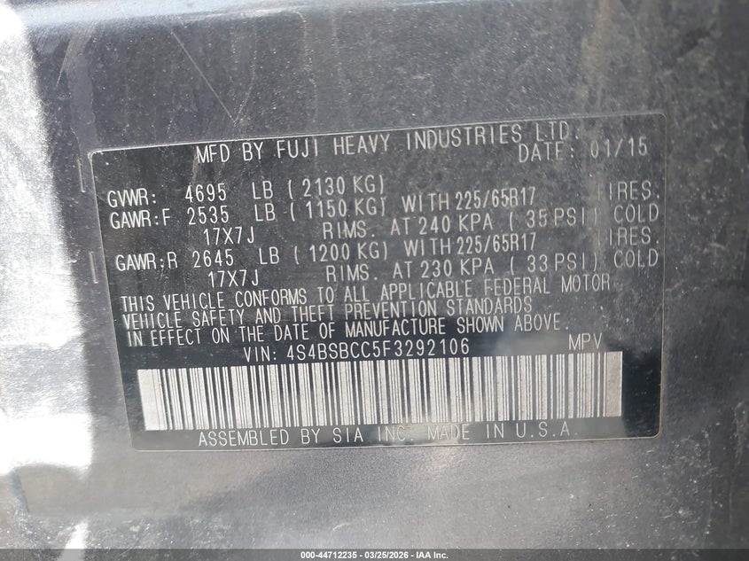 • 4S4BSBCC5F3292106