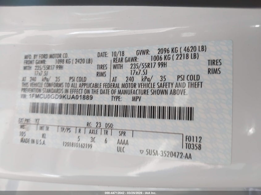• 1FMCU0GD9KUA01889