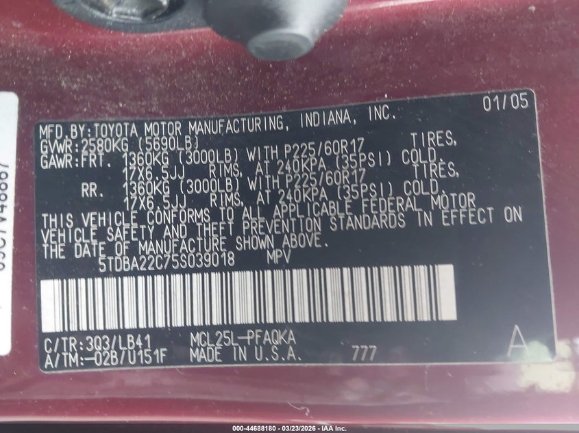 • 5TDBA22C75S039018