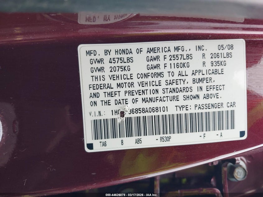 • 1HGCP36858A068101