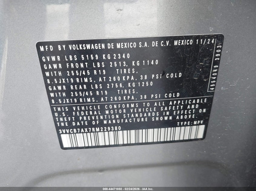 • 3VVCB7AX7RM229380