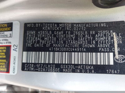• 4T1BK3DBXCU449114