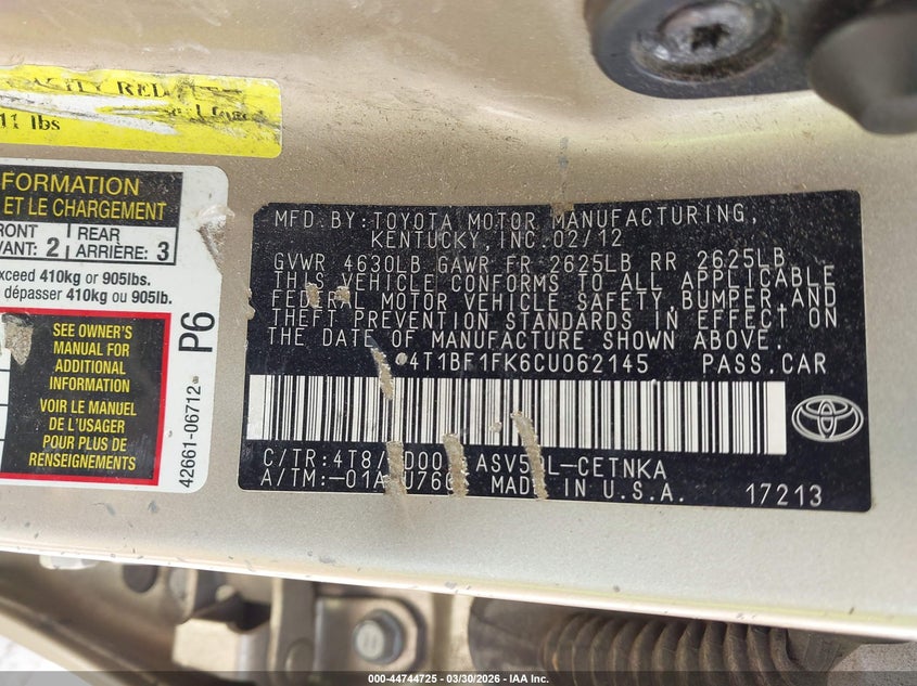 • 4T1BF1FK6CU062145