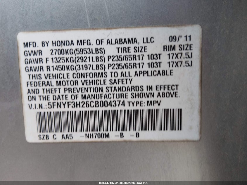 • 5FNYF3H26CB004374