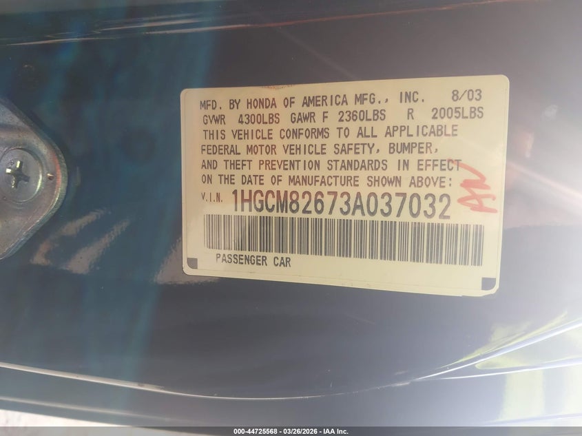 • 1HGCM82673A037032