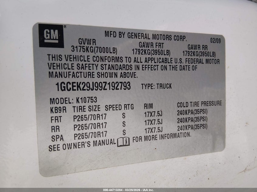 • 1GCEK29J99Z192793