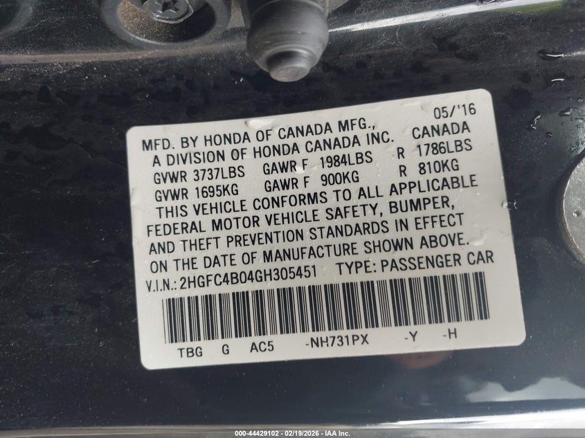 • 2HGFC4B04GH305451