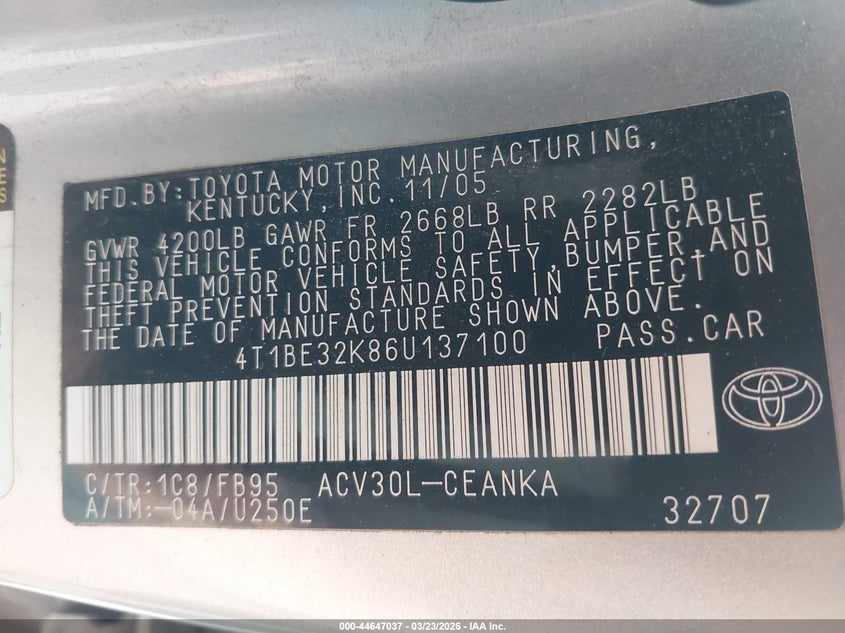 • 4T1BE32K86U137100
