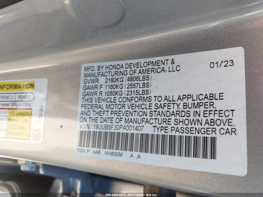 • 19UUB5F30PA001407