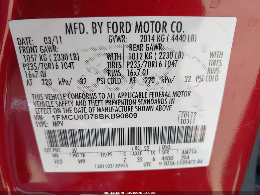 • 1FMCU0D78BKB90609