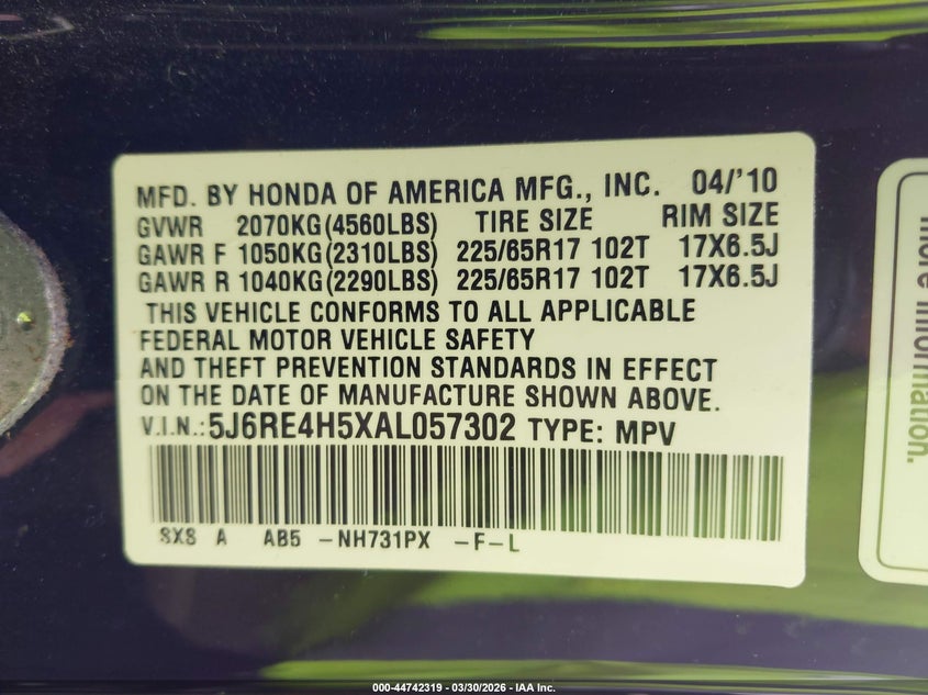 • 5J6RE4H5XAL057302