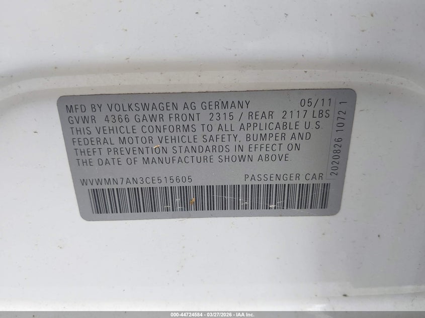 • WVWMN7AN3CE515605
