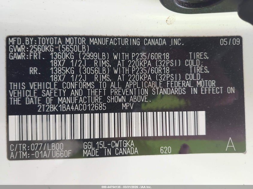 • 2T2BK1BA4AC012685