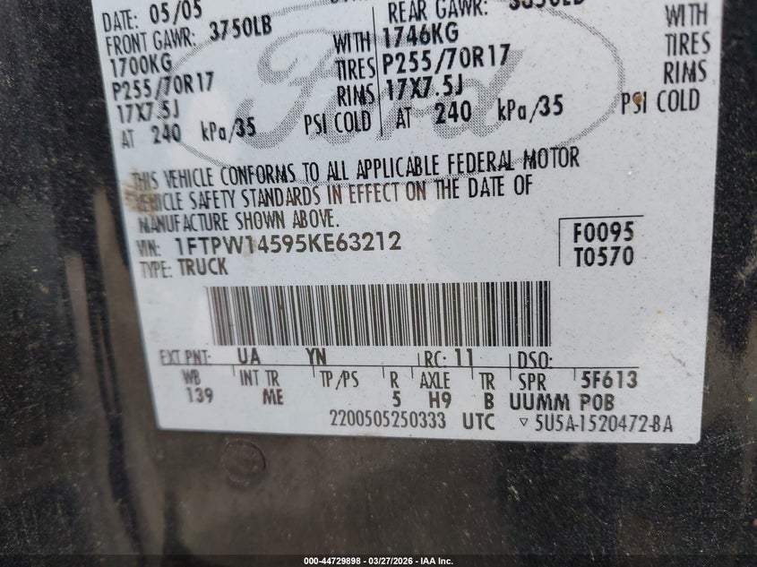 • 1FTPW14595KE63212