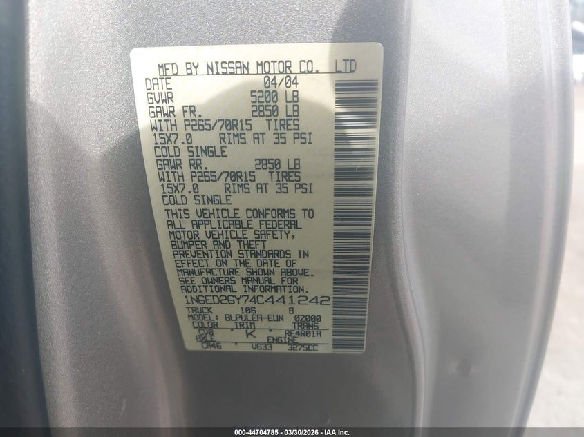 2004 NISSAN FRONTIER XE-V6 for Sale in Templeton, MA