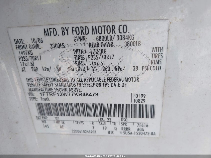 • 1FTRF12W77KB48478