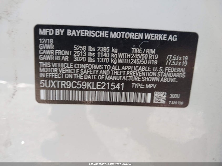 • 5UXTR9C59KLE21541