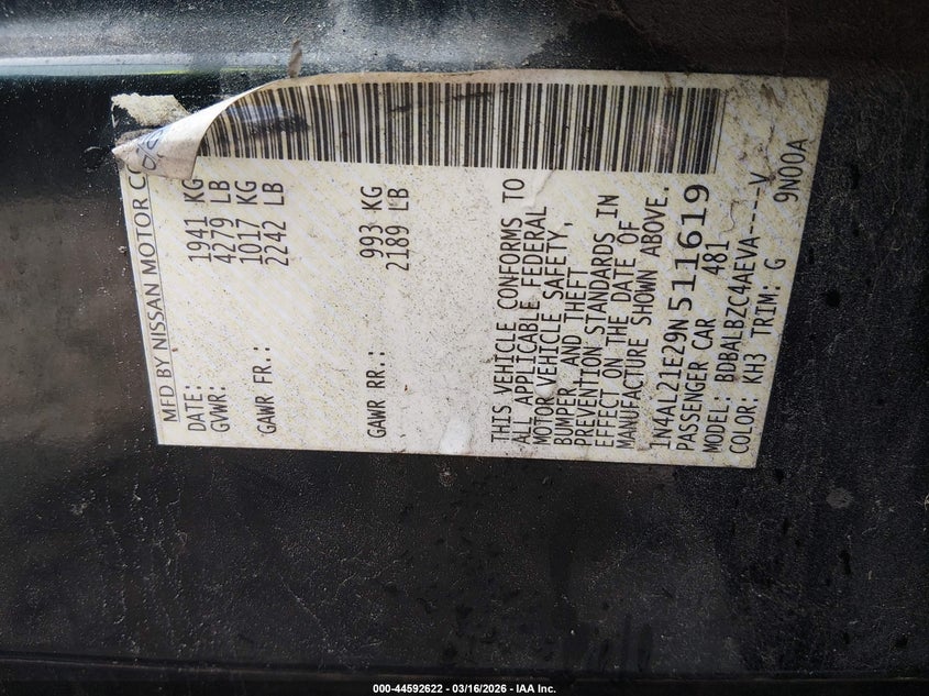 2009 NISSAN ALTIMA 2.5 S for Sale in Rincon, GA
