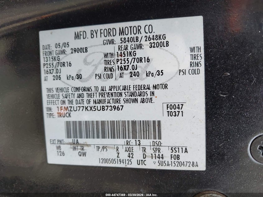 • 1FMZU77KX5UB73967