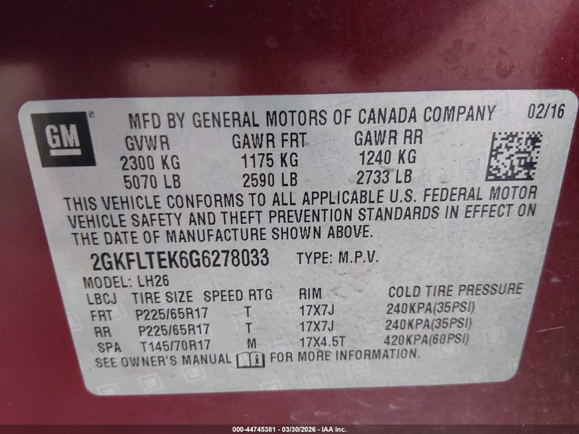 • 2GKFLTEK6G6278033