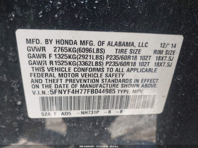 • 5FNYF4H77FB044985