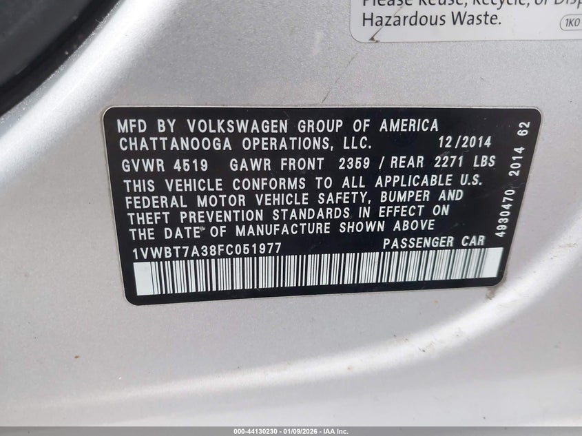 2015 VOLKSWAGEN PASSAT 1.8T SE for Sale in Conshohocken, PA
