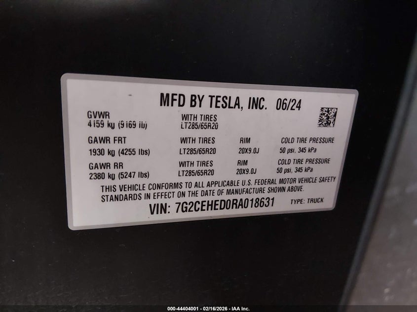 2024 TESLA CYBERTRUCK for Sale in Electric Vehicle Auctions, None
