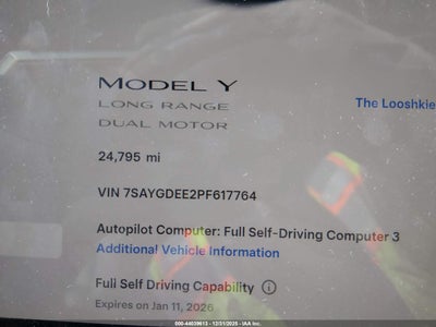 2023 TESLA MODEL Y AWD/LONG RANGE DUAL MOTOR ALL-WHEEL DRIVE for Sale in Electric Vehicle Auctions, None