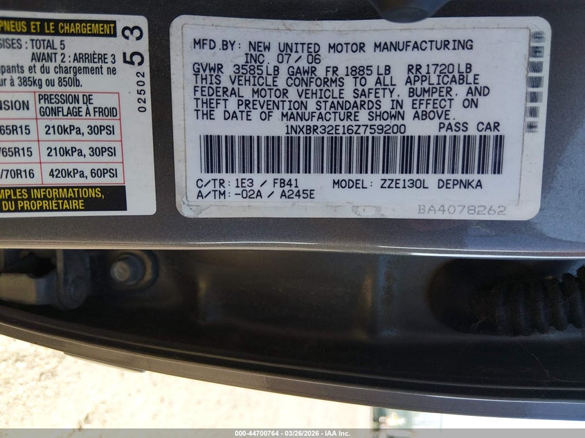 • 1NXBR32E16Z759200