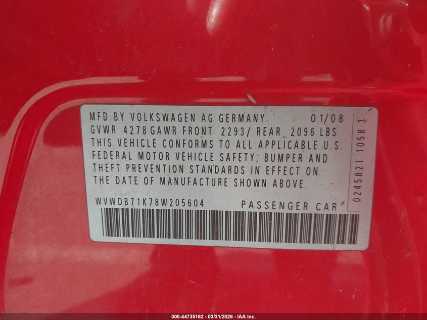 • WVWDB71K78W205604