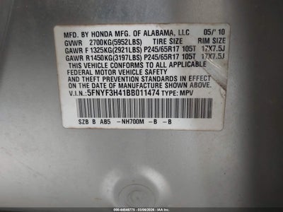 • 5FNYF3H41BB011474