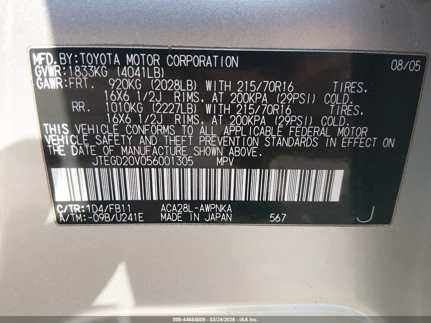 • JTEGD20V056001305