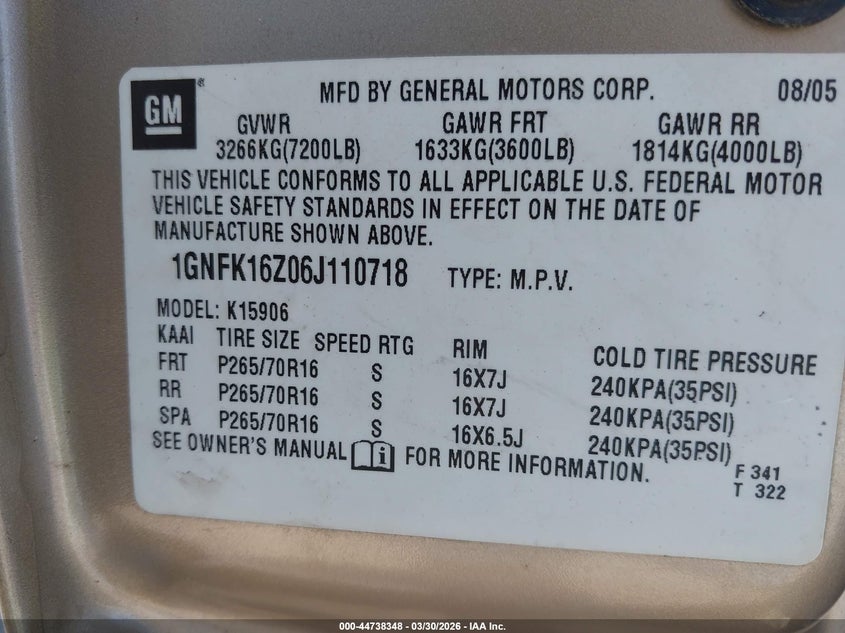 • 1GNFK16Z06J110718