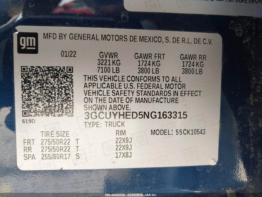 • 3GCUYHED5NG163315
