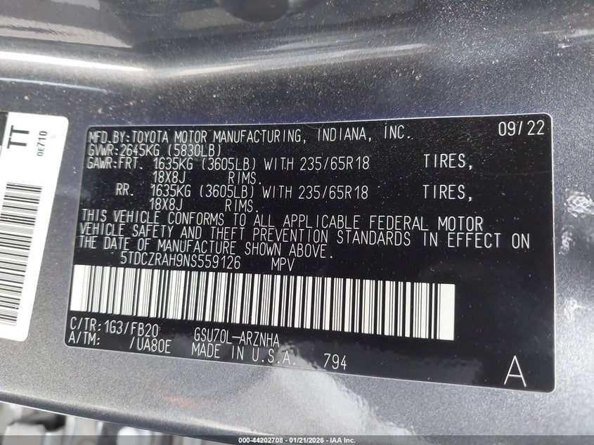 • 5TDCZRAH9NS559126
