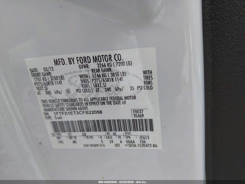 • 1FTFX1ET3CFB22058