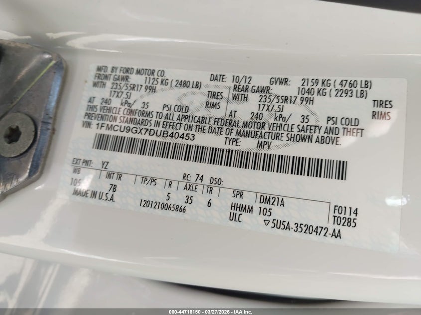 • 1FMCU9GX7DUB40453