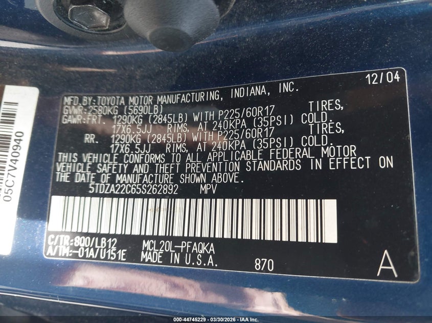 • 5TDZA22C65S262892
