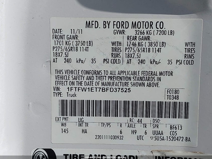 • 1FTFW1ET7BFD37525