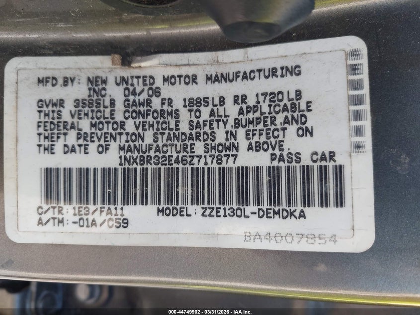 • 1NXBR32E46Z717877