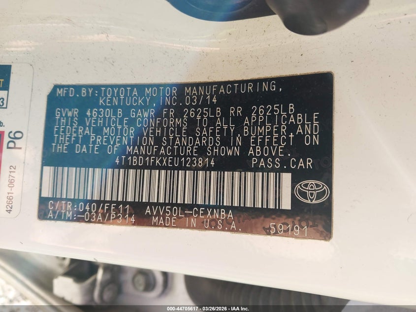 • 4T1BD1FKXEU123814
