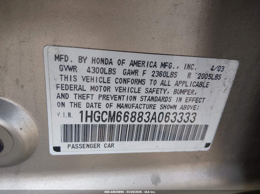 • 1HGCM66883A063333