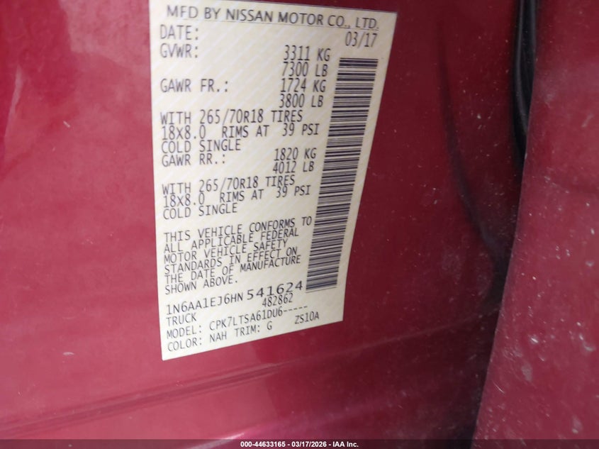 2017 NISSAN TITAN SV for Sale in Culpeper, VA