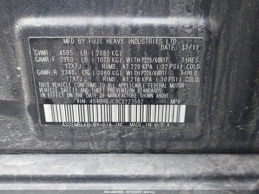 • 4S4BRBJC0C3223592