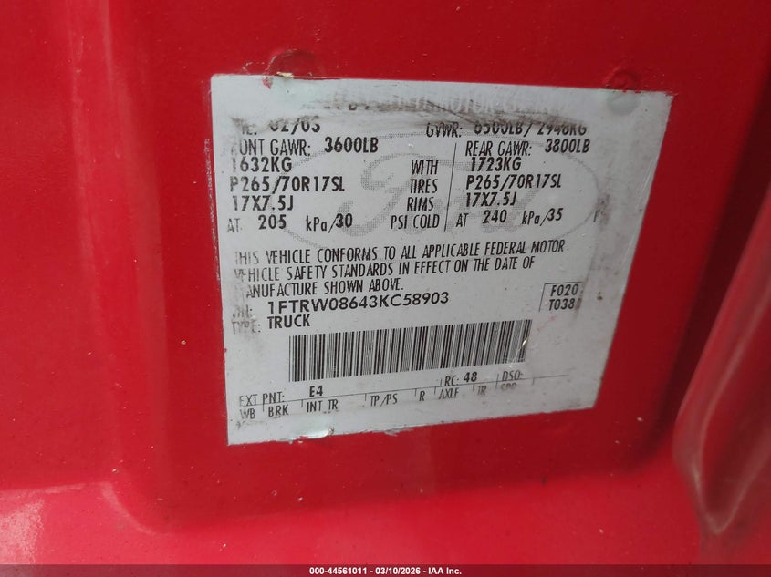 • 1FTRW08643KC58903