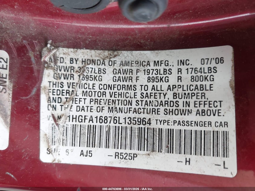 • 1HGFA16876L135964