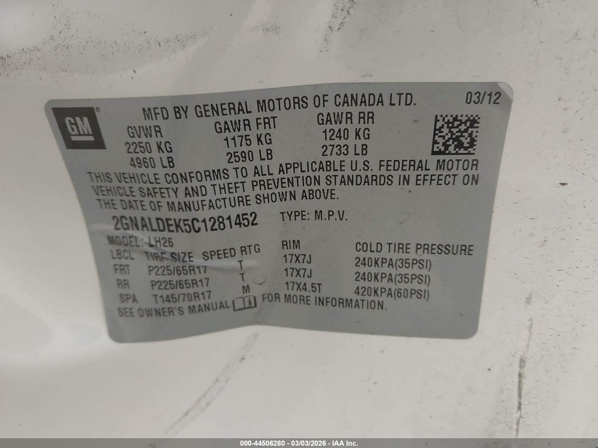 • 2GNALDEK5C1281452
