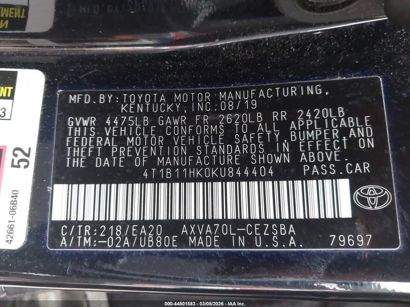 • 4T1B11HK0KU844404