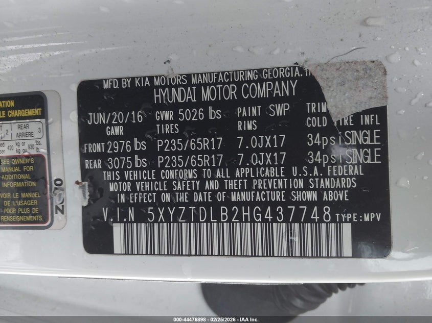 • 5XYZTDLB2HG437748
