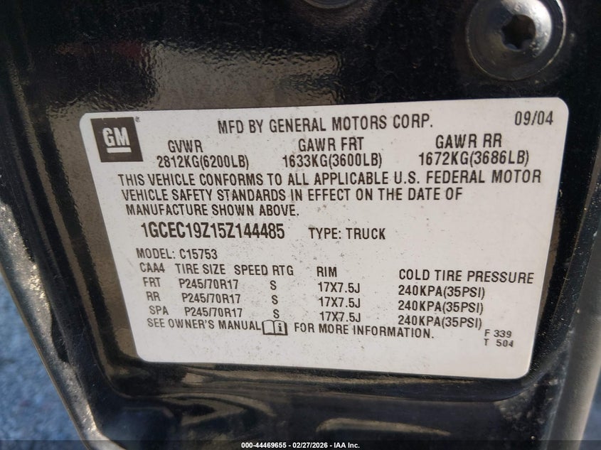 • 1GCEC19Z15Z144485